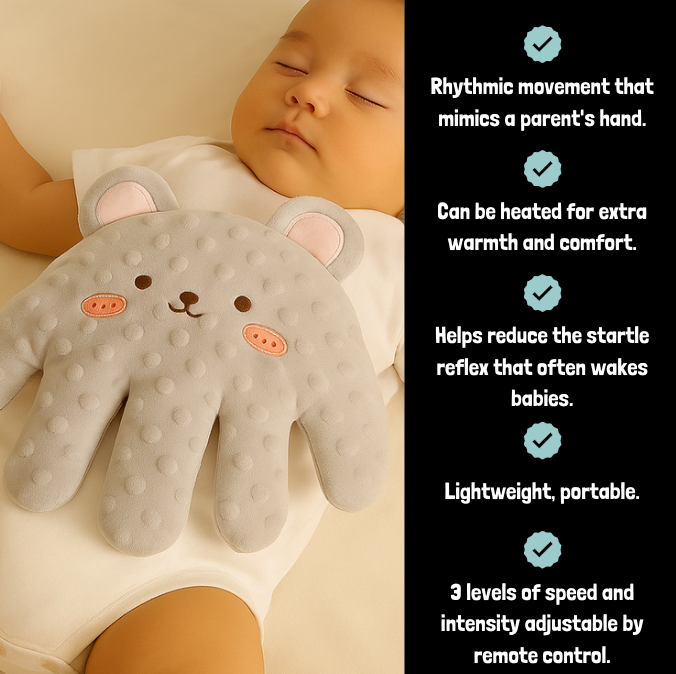 No more endless rocking, pacing, or shushing! The Lumy™ Baby Patter gently pats your baby with a rhythm just like your hand, calming crying, fussiness, and even colic spells in minutes. Imagine your baby drifting off peacefully while you finally get a break. Your arms (and sanity) will thank you.